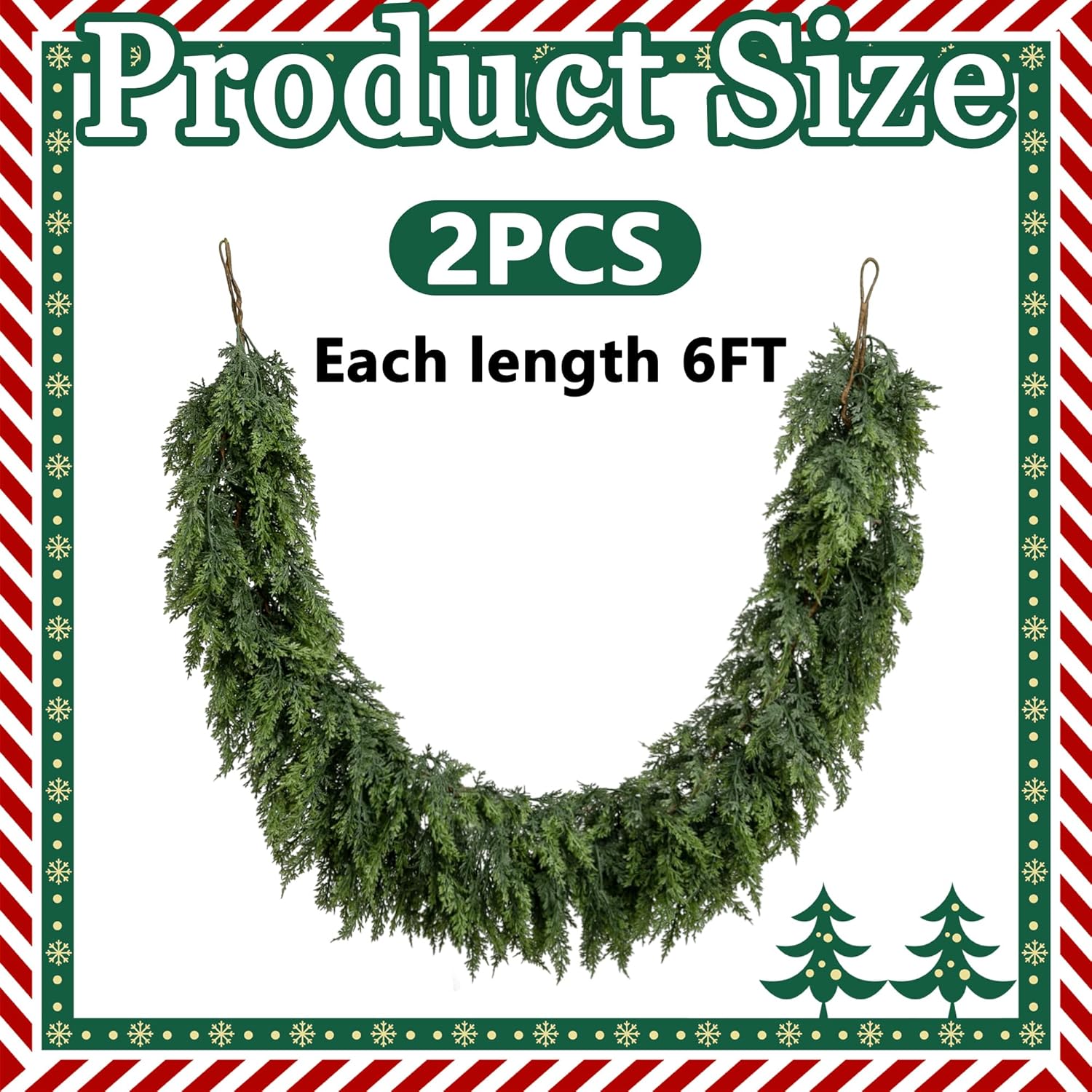 6 Ft 2Pcs Realistic Artificial Cedar Pine Garland
