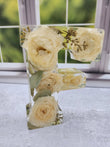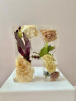 This resin flower is made from dried flowers encapsulated in crystal clear resin. This personalized alphabet design adds a touch of nature and elegance to any room, making it a perfect gift or unique decor piece.