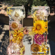Delicate dried flowers are embedded in the resin glass, preserving their natural beauty and creating a mesmerizing visual effect when illuminated. Each flower is carefully selected for color, shape and texture.