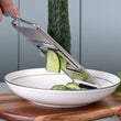 While Using Multi-Purpose Vegetable Slicer Cuts, push the food downward towards the blade rather than pulling towards you because it is 8x faster than other slicers.