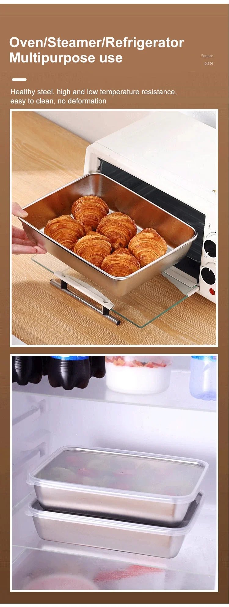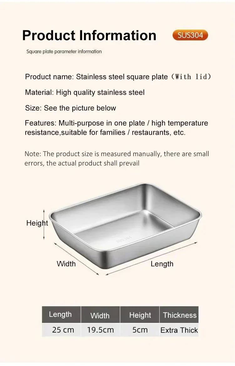 Stainless Steel Square Plate(With Lid)